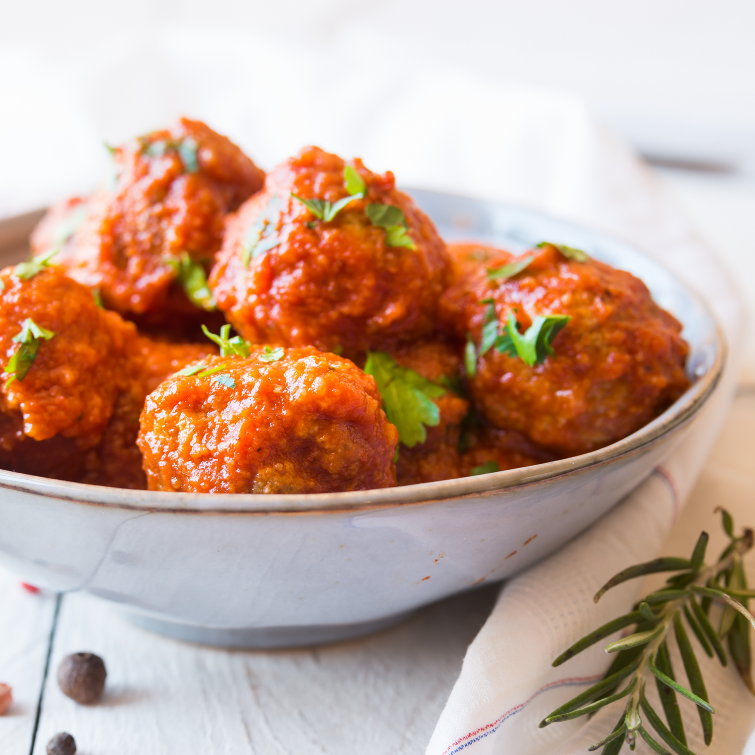 Parmigiana en balletjes in tomatensaus.